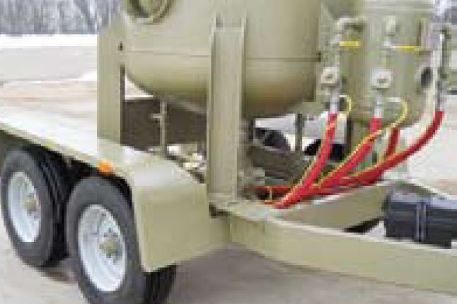 Each operator station is fitted with Auto-Quantum (pneumatic or electric) pressure-hold remote controls, which allow each operator to start and stop independent of the others. The Quantum is an all-media valve, making it possible to switch between expendable mineral or slag abrasives to steel grit as necessary. Pneumatic remote controls are best when the blast hose is 100 feet or shorter; beyond 100 feet electric remotes are recommended to minimize the response time at the nozzle for beginning or stopping blasting.